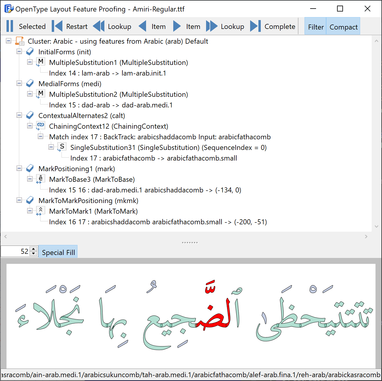 If you need to debug your OpenType layout features, the proofing window comes to the rescue.