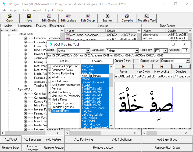 A font with a couple of substitution tables along with a single class based kern lookup is fairly easy to maintain, but when your font supports complex scripts like Arabic, it soon becomes next to impossible to keep oversight of all features and lookups that work together.