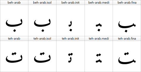 Since most Arabic characters connect, the visual appearance depends on the character context. In general letters have four contextual forms: