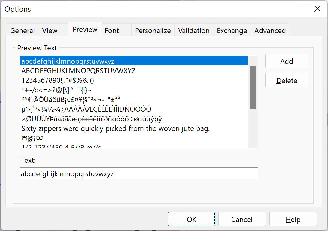 Here you can maintain your preview text, which is used inside the Preview panel.