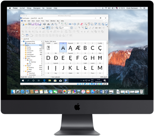 Virtualisation uses software to simulate the hardware of a conventional Windows PC. It allows you to run Windows within macOS itself. Thus you can run FontCreator side by side with Mac applications, without rebooting. Among other things, you can cut and paste text, and share files between them.