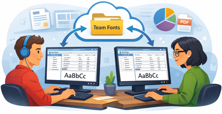 When multiple users work on the same documents, layouts, or production files, font consistency is critical. Missing fonts or different versions of the “same” font can cause substitutions, reflow, and unexpected output. With MainType, you can create a shared team font library and use font synchronization so every workstation stays aligned.